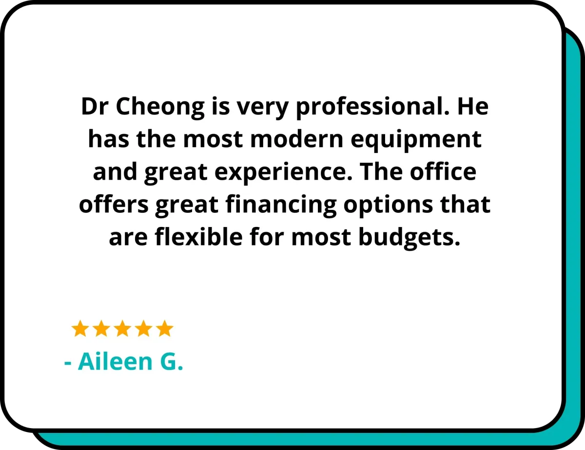Dr Cheong is very professional. He has the most modern equipment and great experience. The office offers great financing options that are flexible for most budgets.